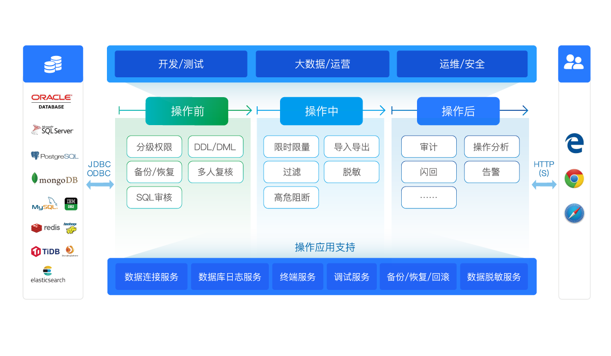 对数据库访问行为进行统一、安全管控,实现数据库访问入口统一、管理入口统一