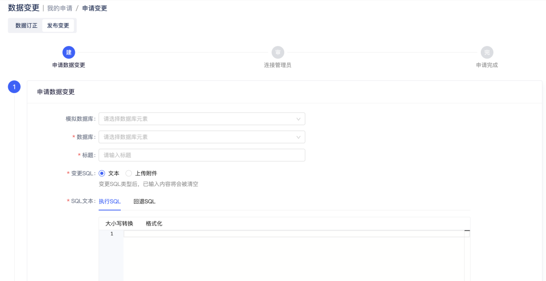 而本次更新,我们针对大量数据变更增加了「发布变更」功能,在进行重大数据变更如大批量数据修改、系统正常版本升级、数据迁移等情况下,可提交「发布变更」申请。