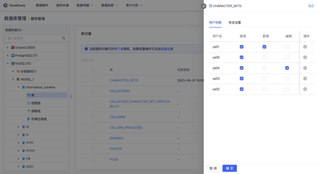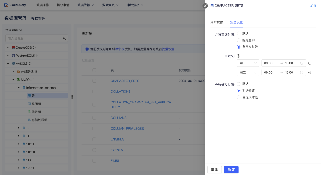 新增细粒度授权,社区版 v2.0.0 授权粒度仅到 schema 级别,本次更新新增了表层级的授权,可针对单表进行用户权限访问权限配置、访问时间限制等
